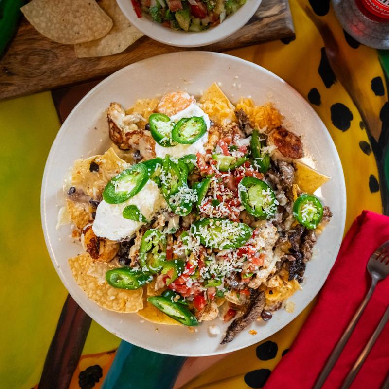 *Nachos with Grilled Chicken, Steak, or Shrimp